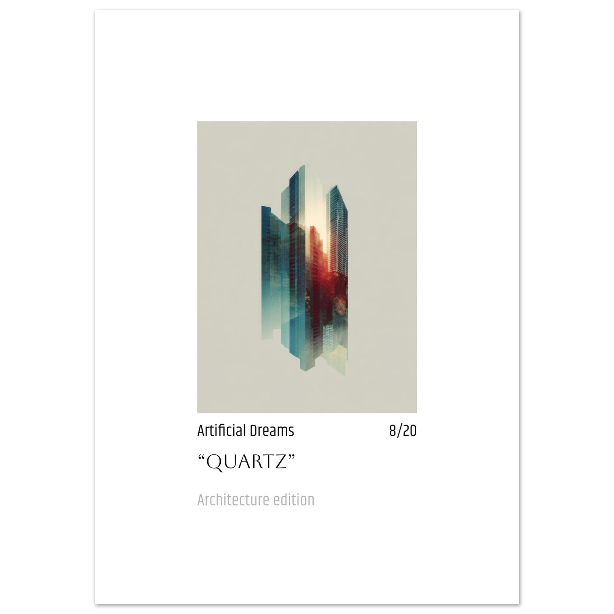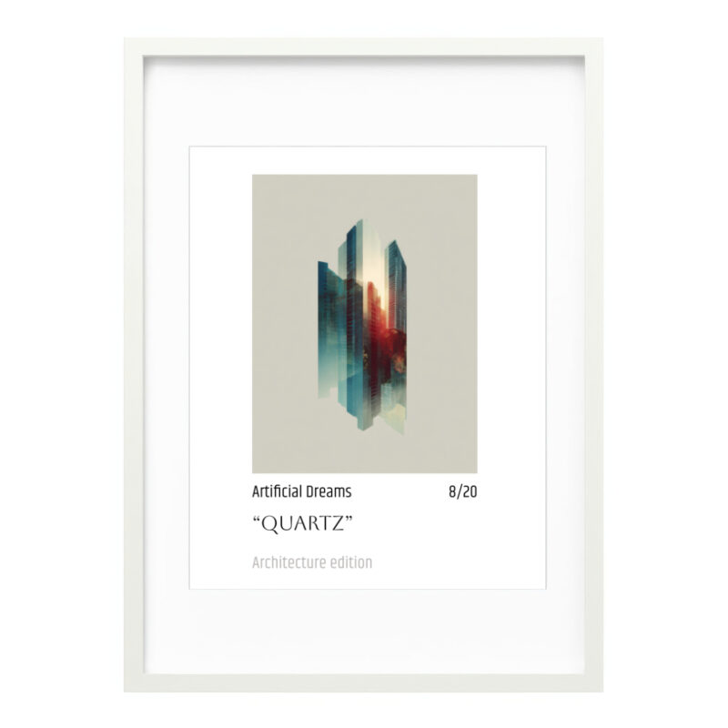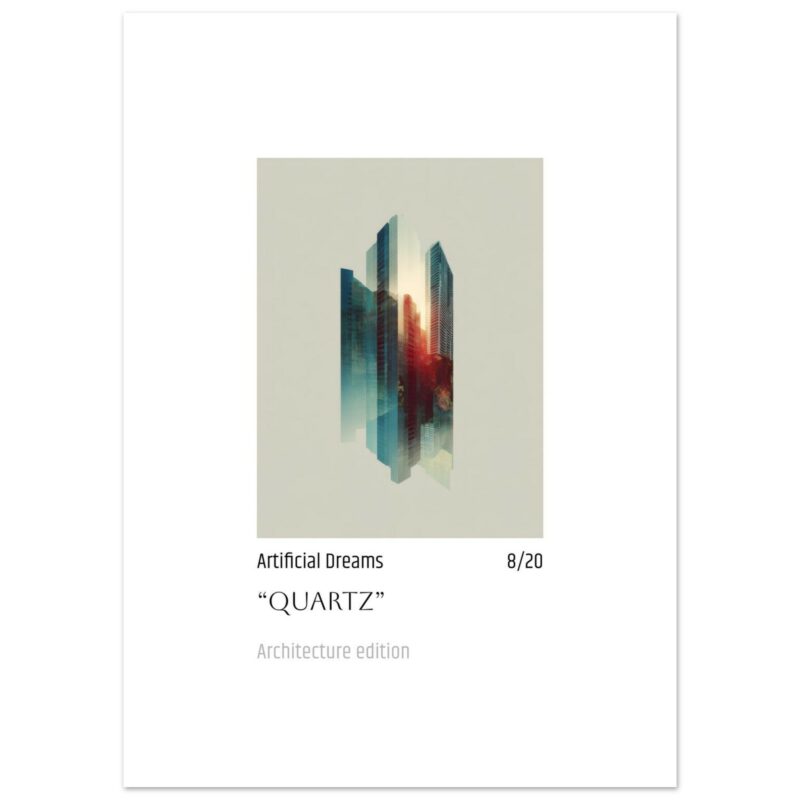 Immerse your space in the ethereal glow of “Quartz” Artificial Dreams, an architectural masterpiece that blurs the lines between urban reality and vibrant fantasy. This stunning Fine Art Poster captures a city’s soul with a breathtaking blend of cool blues and fiery reds, creating a dynamic visual narrative that will mesmerize art lovers and design enthusiasts alike.