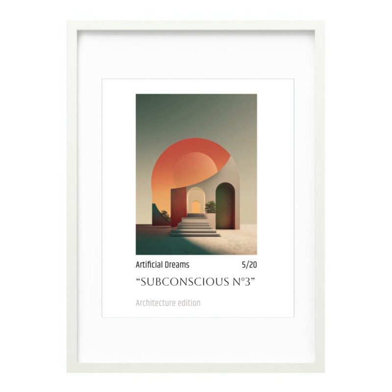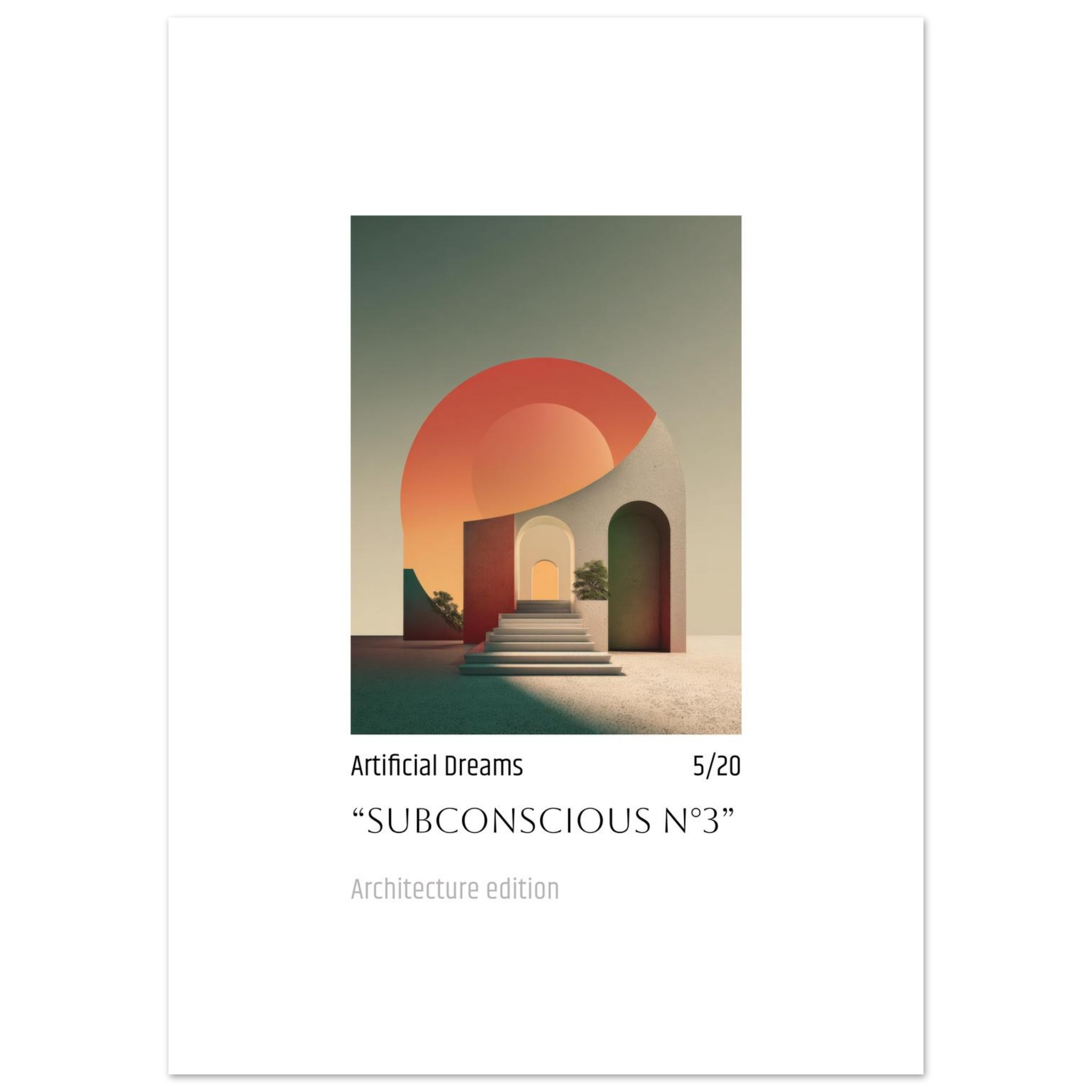 Step into a realm of serene architectural dreams with our “Subconscious N°3” Fine Art Poster. This captivating piece, with its warm sunset hues and minimalist structures, invites contemplation and adds a touch of modern sophistication to any space. Perfect for those who appreciate art that merges reality with imagination, this poster is a visual escape.