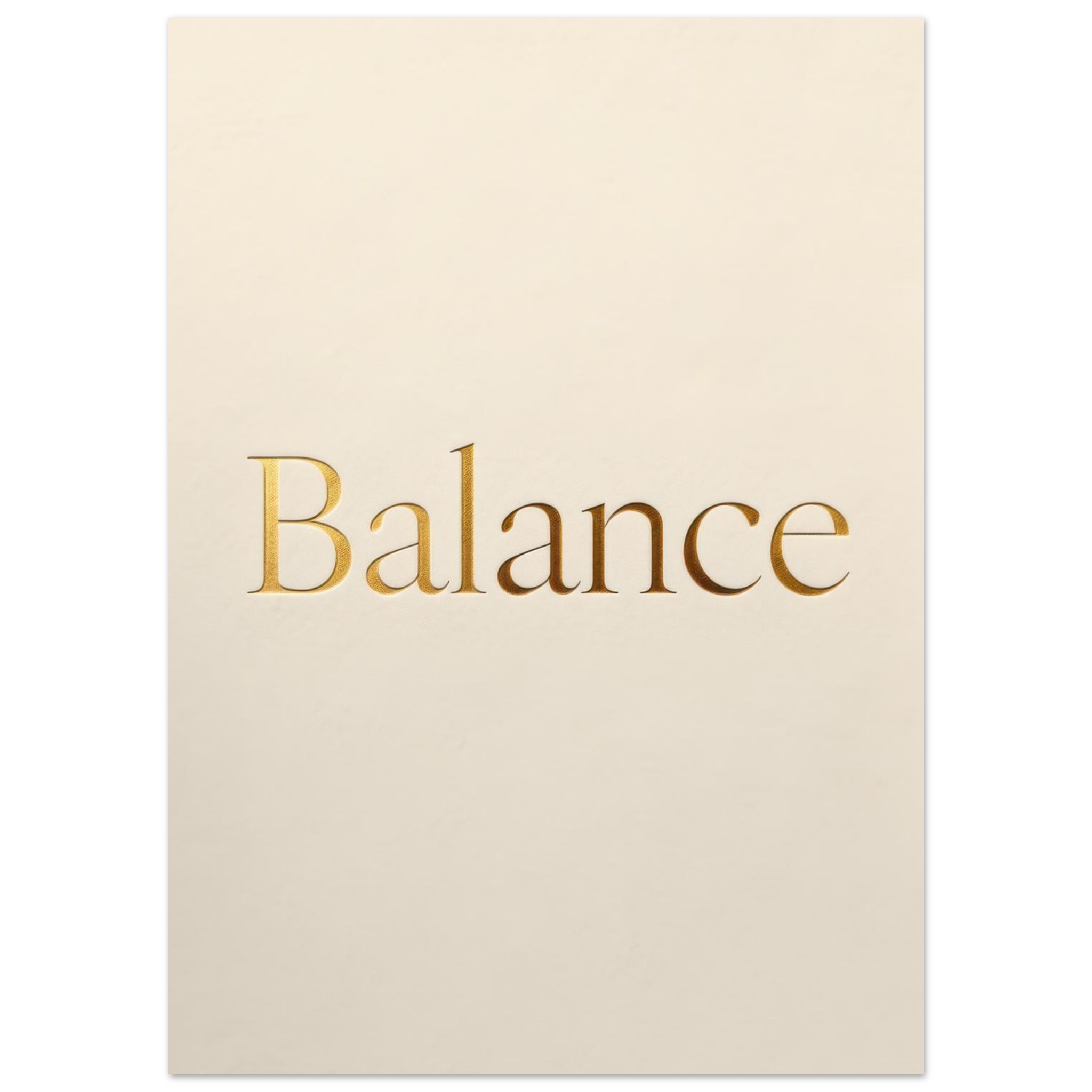 Elegant minimalist wall art print featuring the word ‘Balance’ in luxurious gold foil lettering on a soft cream background. This sophisticated typographic print adds a serene, refined touch to any living space, bedroom, yoga studio, or meditation room. Perfect for those who appreciate clean, modern design with an inspirational message.